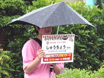 降雨の中ですから、とにかく大道芸人sanも大変です。