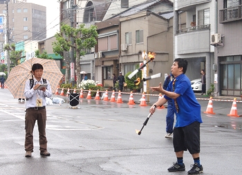 たいまつのジャグリングも時たま手が滑りますのでしょうねぇ〜悪環境の中で、結構大変そうでありました(^-^)