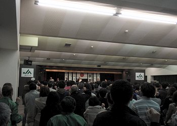 | ■2011年05月02日 GONsanには場違いの感もありますけど、少しだけ能の世界へ(^.-)☆ もぅ既に1ヶ月ばかり前の事になってしまいましたけど、先月・4/8には、お招き頂きまして少しだけ能の世界におじゃまとなりました(^.-)☆ 昨年もこの時期でしたように思うのですけど、能の世界をご案内頂きます機会に恵まれました。 この時には、15〜18名ばかりの方々とご一緒でしたけど、今回は皆様何かとご多忙でしたのかも… 出かけてみますと、なんと今回はGONsanを含めまして4名と少人数ですからタマりません(^-^; 大人数の内の1名でしたら、皆様のお話に耳を傾けていましたら宜しいのですけど、少人数ですからそぅもいきません。 とりあえず能楽堂で、舞台のさわりを少しだけ拝見。 う〜ん、やっぱりGONsanには別世界でありました(^-^; 能楽堂から階下へと降りて来ますと、今度はお食事でありました。 席に着きますと、GONsanの左隣りに同僚、そして対面にはM産婦人科の院長先生。そしてそのお隣りに新市町在住の方。 救われましたのは、この対面のお二人が仲々愉快で、よくお話しになられます方達でしたから(^-^) ■正式名称:喜多流大島能楽堂(通称:大島能楽堂) 所在地:広島県福山市光南町2−2−2 ![]() 084-923-2633 Fax084-923-8730 Email:osimano@orange.ocn.ne.jp 交通機関:JR山陽本線福山駅下車徒歩15分 バスで「商工中金」下車徒歩3分 構造:鉄筋コンクリート造り、地上3階建て 1階 稽古場、喫茶室、事務室 2階 能舞台、見所、楽屋 3階 楽屋、見所 設計:小西武彦(文化財建築技師) 施工:東京安田工務店 開場:昭和46(1971)年9月24日 能舞台構造:総檜造り 本舞台:間口 5.47m、奥行 5.47m 後座:間口 5.47m、奥行 2.55m 地謡座:幅 1.20m、奥行 5.47m 橋掛り:幅 2.0m、長さ 6.60m 舞台との角度 100° 屋根:入母屋式檜皮葺き。 窓を障子にして自然光を取り入れている 鏡板揮毫:園木冬扇(福山在住) 見所:総定員 395名。固定席 265席、 畳席 23席、補助椅子席 107席 ・大正3年、2代目大島寿太郎(明治4〜昭和4年)が、福山市新馬場町(霞町)に建てた大島能舞台は、昭和20年の戦災で焼失。 ・昭和23年、3代目・大島久見が戦後復興に努力し、光南町に能舞台を建設、能楽の普及、啓蒙に勤めた。 ・昭和33年より、年4回、解説付きの定例鑑賞能(能楽教室)を全国に先駆けて開催し、中四国地方はもとより各地からのファンの期待に応えている。 ・昭和46年、老朽化した能舞台を建てかえ、関西以西の西日本では唯一、全国的にもめずらしい個人での本格的な能楽堂(約300席 1階稽古場、2・3階能楽堂)を建設。平成9年、座席などを改修。 ・2003年3月、「福山喜多流能楽堂」から「喜多流大島能楽堂」に改名。 ・2003年9月、1階部分を改装。展示サロン室「樫木端」を併設する。 …と、こんな喜多流大島能楽堂なんですけど、昨年もこの絵日記に綴りましたような(^-^) とにかくGONsanに取りましては空の上の世界ですから、何かと居心地の悪さも生じますが、対面のお二人の豪快な明るさには、実に楽しいひとときとなりました(^.-)☆ このお二方、なんでも喜多流大島能楽堂のお弟子さんのご様子で、謡いもご披露頂きましたけど、GONsanの面前ですから、お弟子さんと言えども大変迫力がありましたネ(^-^)//" |