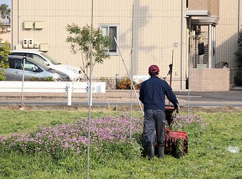 田んぼに眼を向けますとレンゲ草の刈り取りの真っ最中。そぅですネ、そろそろ田植えの準備も始まりましたネ(^.-)☆