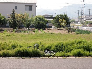 A.M.8:30頃でしたか…朝刊を取り出しに我が家の前に出ますと、真ん前の畑の傍らにまた自転車の放置と言うか乗り捨て発見です(^.-)☆