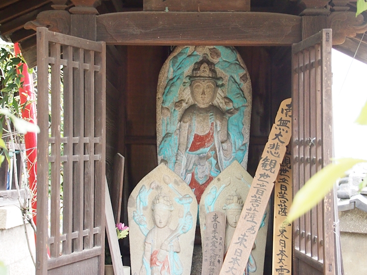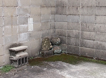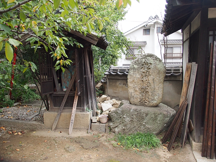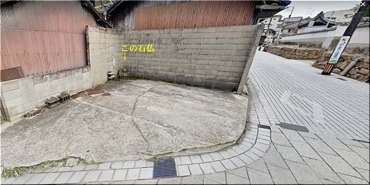 この「山中鹿介首塚」と「ささやき橋」の箇所は、右から左にと曲がった通りなのでありますけど、この道の片隅のブロック塀の傍らに小さな石仏が存在します。けど、何らの説明板もありません。が、いつもここを通ります度に気になりますネ。実に寂しく存在しますけど、これは何なんでしょうネ…