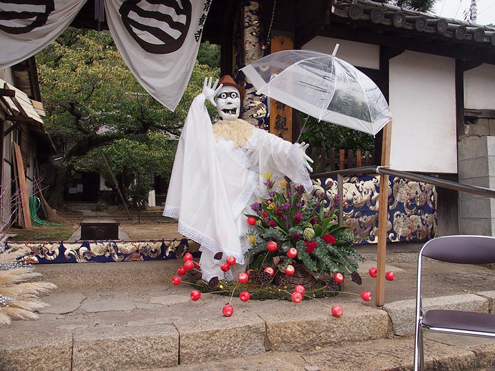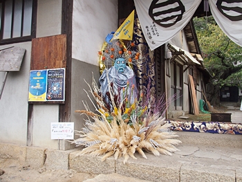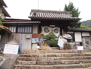 静観寺の山門下には、「鞆の浦 de ART 2022」の作品の展示が…