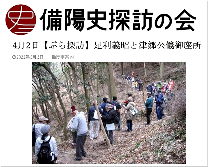 4/2(土)は、備陽史探訪の会「ぶら探訪足利義昭と津郷公儀御座所=vに参加
