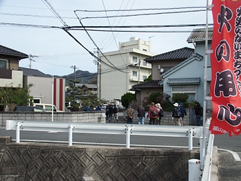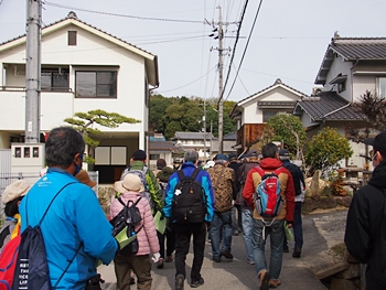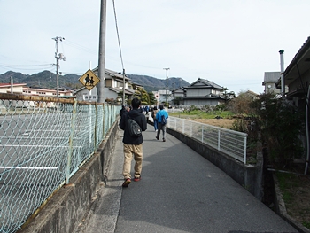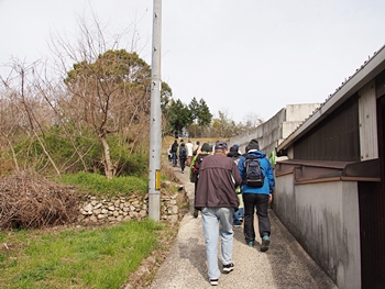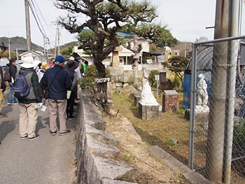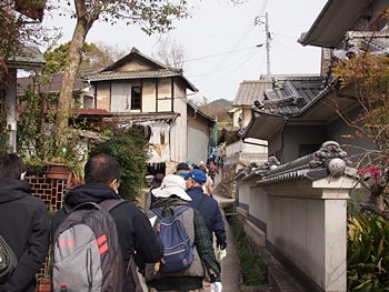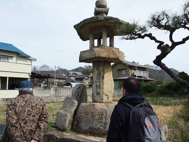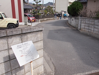 公民館をスタートしまして、まず向かいますのが「足利義昭居館(鞆幕府)趾・御殿畑」「惣堂明神社」のようです。