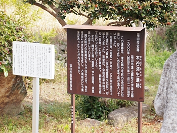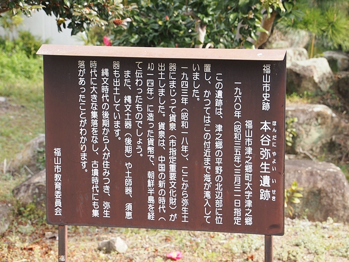 それから、津之郷小学校方向に進んで行きますと、小学校敷地内に、「福山市史跡 本谷弥生遺跡」と「貨泉(福山市指定重要文化財)」の案内表示板が…案内板には、こんな記載がありました(^.-)☆