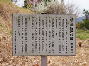 津之郷町本谷にあり、惣堂明神社の東の平坦な畑に足利義昭の御殿があったといわれている。標高34mの丘陵にあり、山陽道や神島を望むことができる。