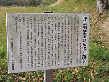 津之郷の場合は、現在秋祭りに惣堂神社で行われている。基本的には本郷町のひんよう踊り(県無民)と共通するところが多いが、踊りの構成・服装・歌詞などに多少の違いがある。内側に羽織・着物(かっては紋付・袴)を着、梵天を持った男性、外側に音頭取り(二人)、拍子取り(二人)、太鼓打ち(一人〜二人)とキリコを持つ踊り子(児童)が取り囲む。キリコは伝八笠に多角形の行燈を付け、さらに行燈上に笹を付け、梅・桜を模した花で飾る。これを踊り子の頭の上に載せ、笠の周囲に木綿白布を垂らし頭を隠す。キリコを頭に戴く形式は古い形で、江戸時代の「御門状答書」の付図と同じで、本郷のひんようと異なる。