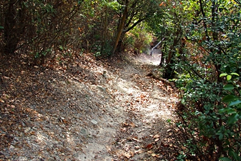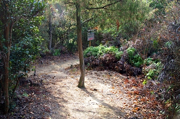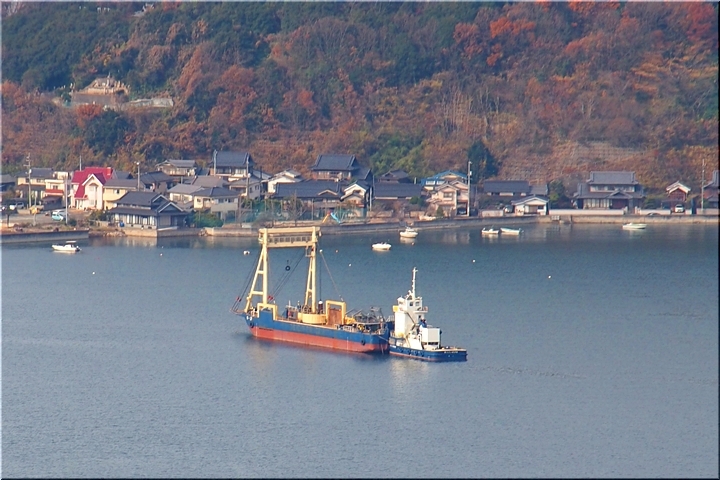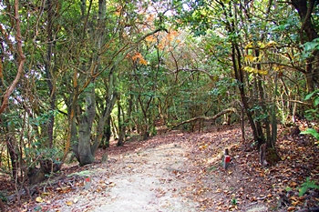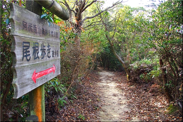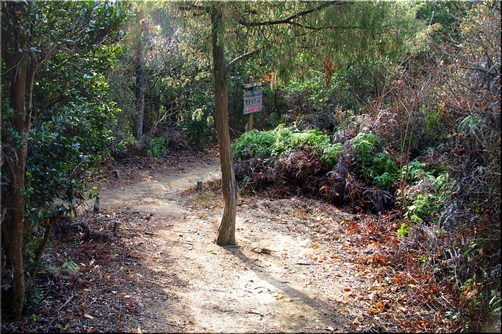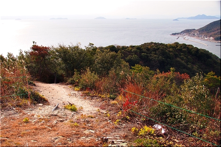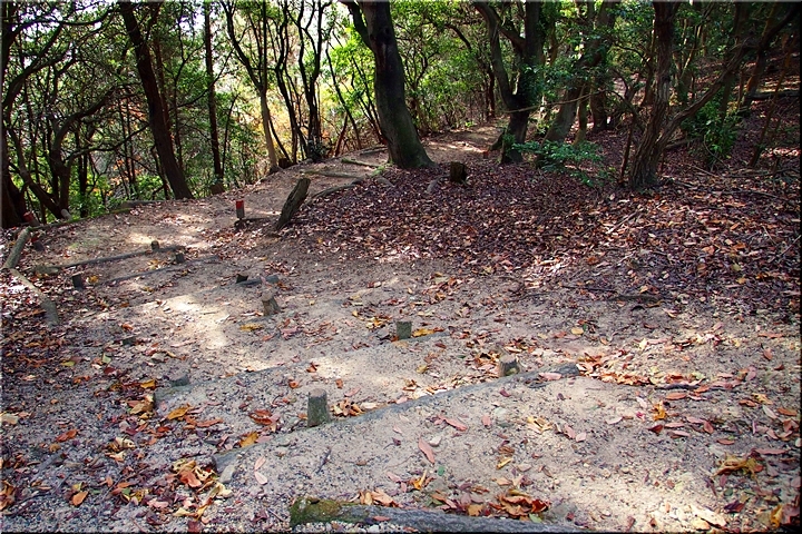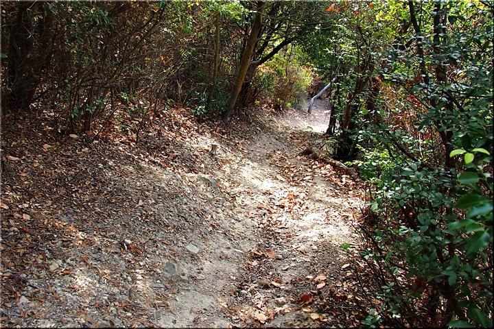 今まで、このルートで阿伏兎山に上がってきました事は何度もありますけど、下るのは初めて。このルートの方が少し急斜面ですから、落ち葉で足を滑らせないようにしませんと(^-^)