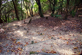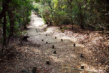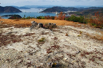 それではこの辺で展望台跡から下山ですけど、北側から上がって来ましたので、下山は南側・阿伏兎観音側へのルートで。