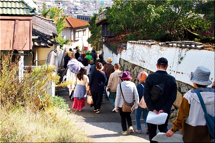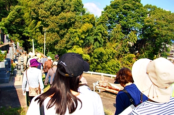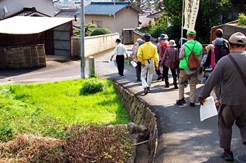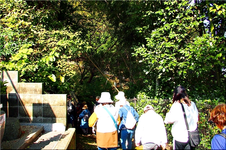 石垣沿いの道は狭い小径ですから、後方におりますと、哀しいかな説明される方の声が聞こえません(^-^;