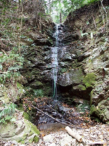 妙顕寺の西裏山50mの所にあり、落差8メートルの滝である。幕末の漢学者・門田朴斎は此の滝を日光華厳の滝になぞらえ詩を残している。