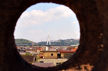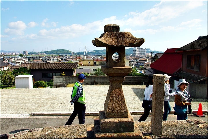 妙見神社の常夜燈からは、いつものように芦田川大橋主塔をパチリです。妙見神社を後にしますと、志茂占部≠フ石垣に文字を現した石組≠ヨと向かいます(^-^)//"