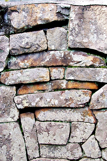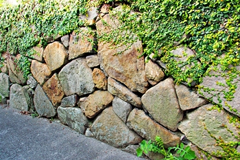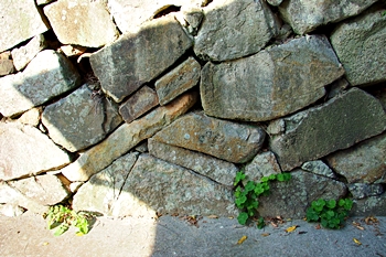 石垣にはツタ≠ナはないのでしょうけど、類似の植物が張って覆われた箇所もありますので、家≠フ部分は覆われて隠れていて見えませんのかも…