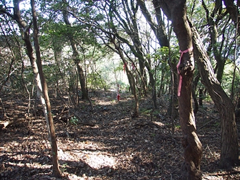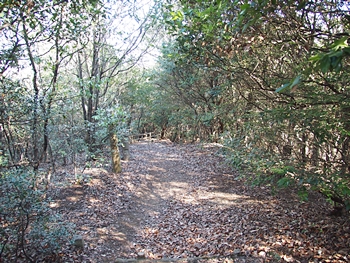 赤いリボンを頼りに展望台横を上がって行きますと、〝後山園地探勝歩道〟入口が見えて来ましたネ(^-^)/