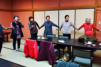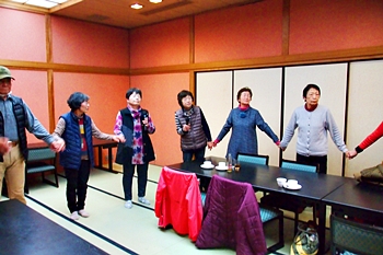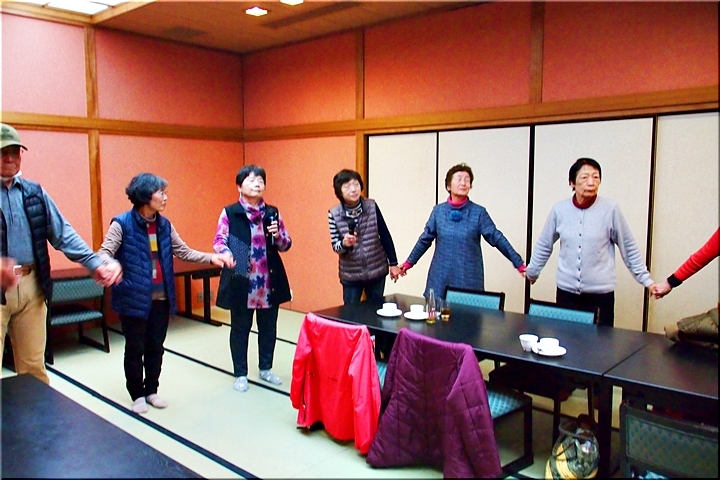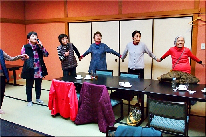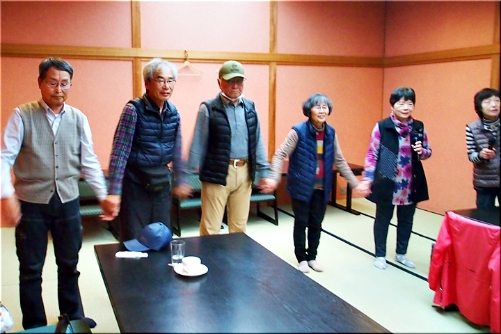 宴席は、P.M.2:00まででしたから、お開きの時間も近付いて来ました。最後は、皆さん手を取り合って(^.-)☆
