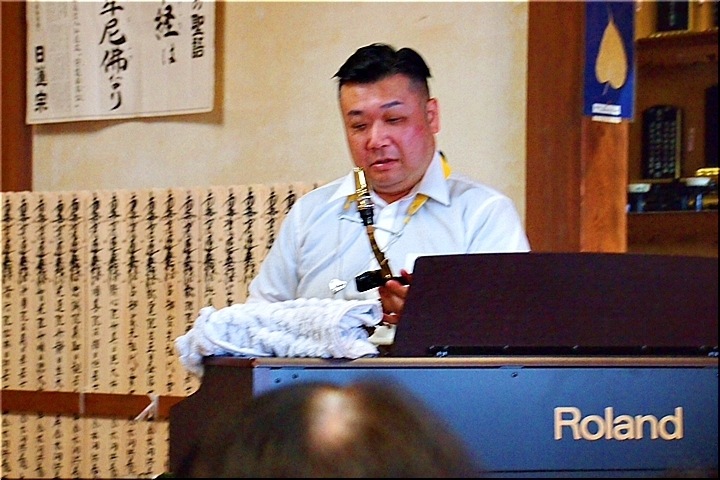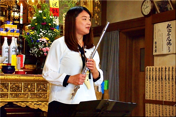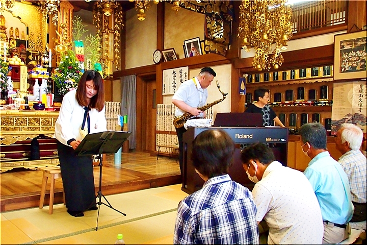 ふ〜ん、法要後は久し振りにミニコンサート≠フようですネ。コロナ禍以前までは、春・秋彼岸会のいずれかで行われておりましたけど、コロナ禍では、法要を終えますと、お接待の品・お塔婆を手に散会となりまして、以降は、お上人の法話・外部講師をお招きしての講話が続いておりました。