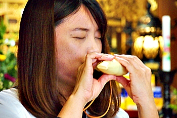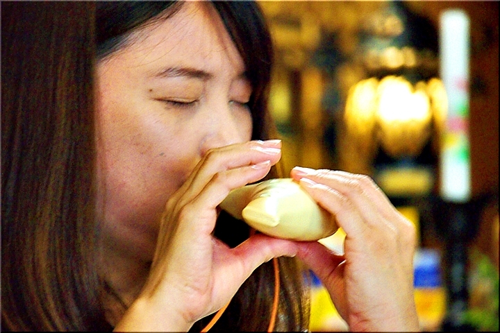 女性の首に吊しておられますのはオカリナ≠フようですネ。