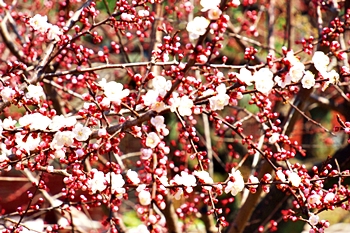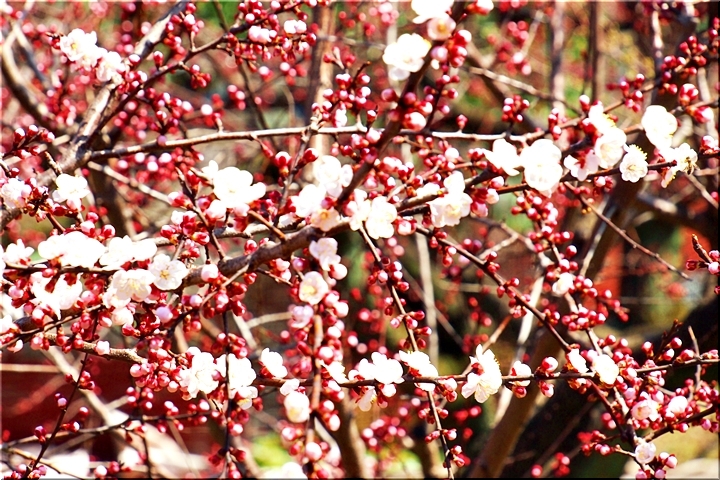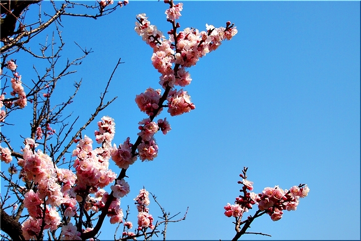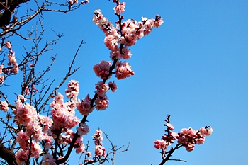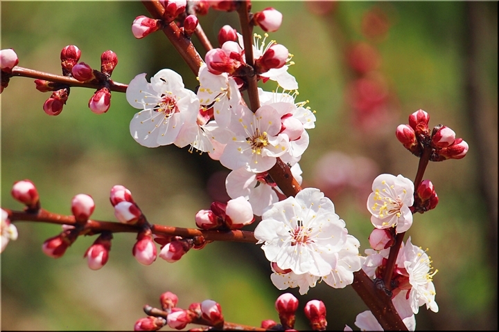 この菜の花畑≠ノも杏の木が何本か存在しますけど、未だ未だ満開には程遠い状態でありました。が、近付いて部分的に画像に納めますと、仲々キレイ(^.-)☆