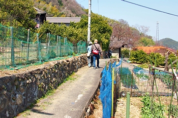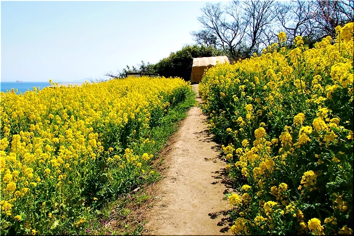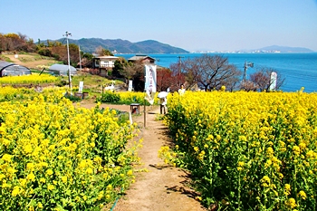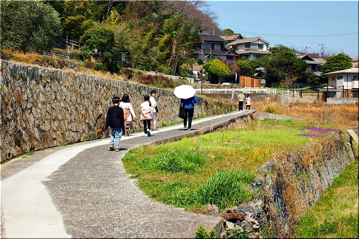 菜の花畑≠サして瀬戸内の眺望を楽しみましたので、それではこの辺で菜の花畑≠ニお別れし、帰路につきます事に。帰路は、山際の遊歩道でなくエクセルより少し上辺りの遊歩道を歩行です。