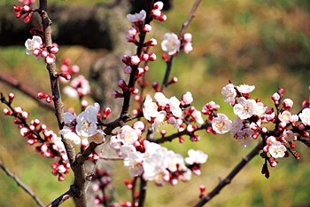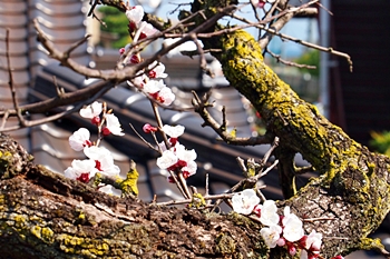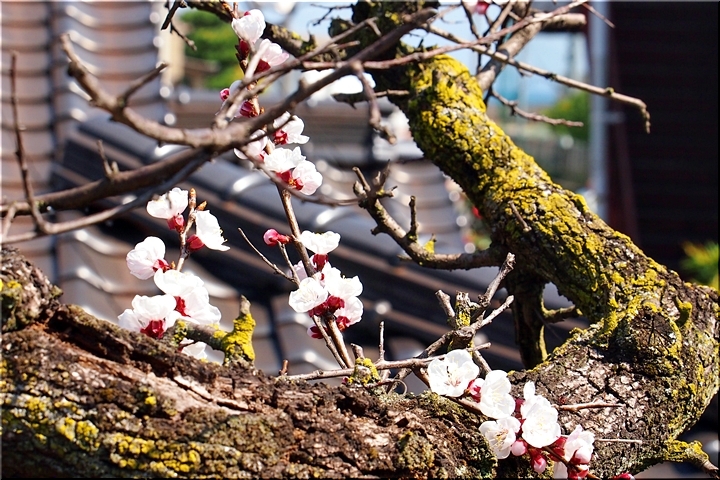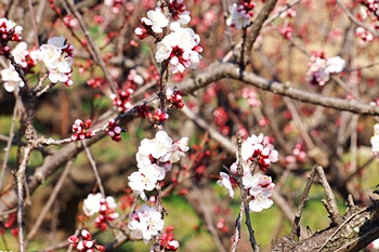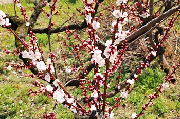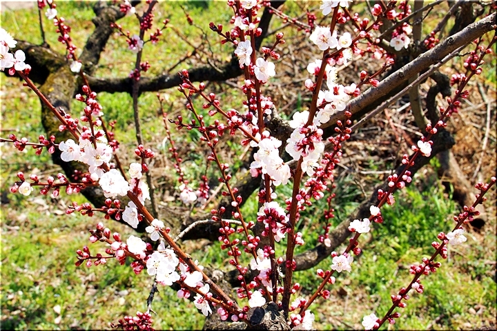 暫く進みますとビニールハウス沿いに出て来ますけど、この辺りの杏畑が満開ですと大変キレイなんです。が、ここもまた、久しく満開状態の景観を眼にした事がありませんGONsanです。いつもでしたら、それなりに開花が楽しめますけど、例年以上に開花が遅れていますようでしたネ(^-^)