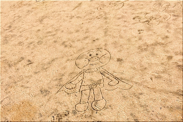 アンパンマンが上手く可愛く描かれておりました。周辺を見廻しますと、ドラエモンも(^_^)v