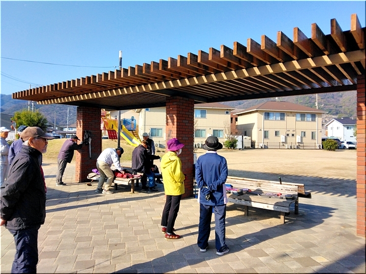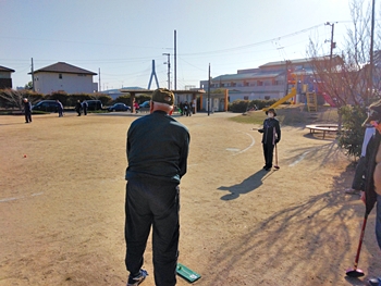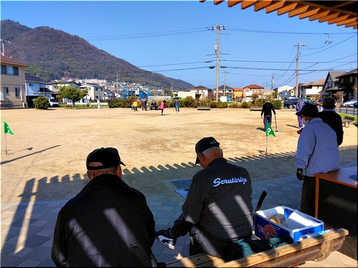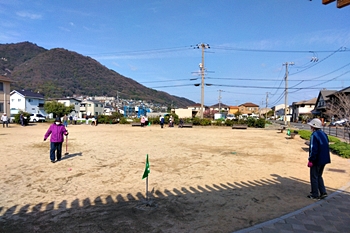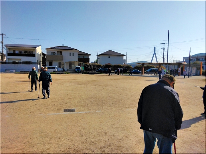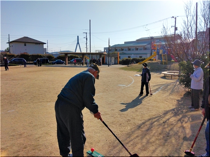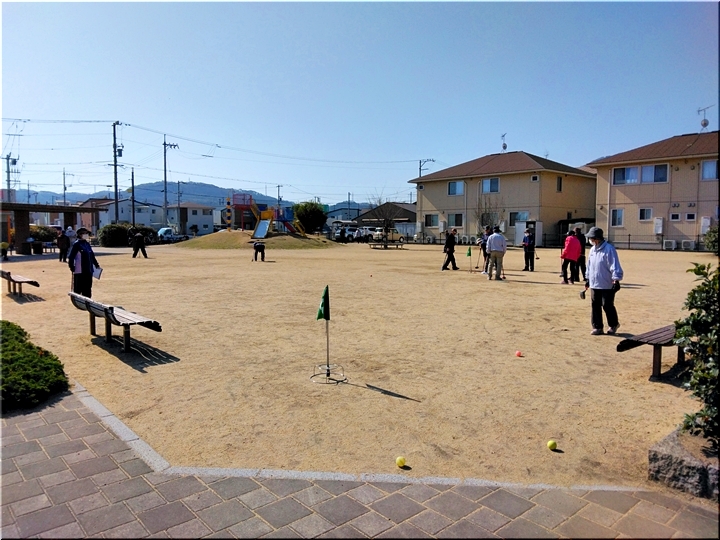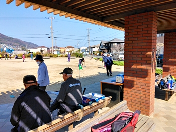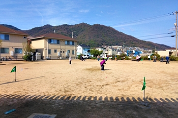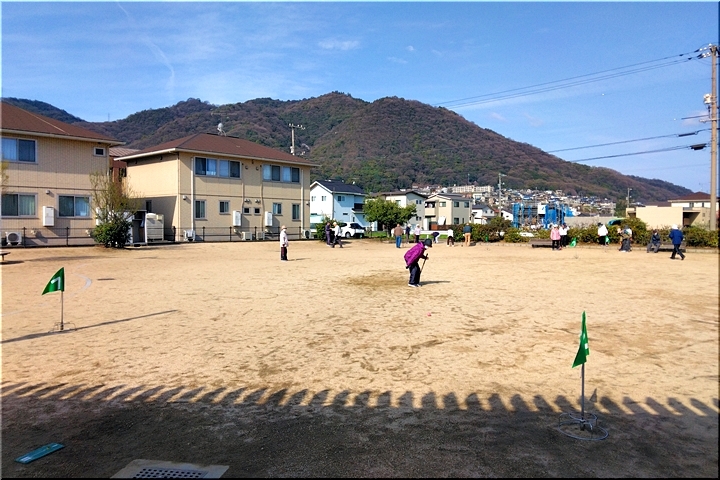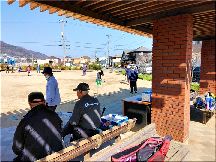 毎朝のGGでは、ゲーム開始前に、皆さんで手分けして、スタートマット・ホールポスト等を準備します。