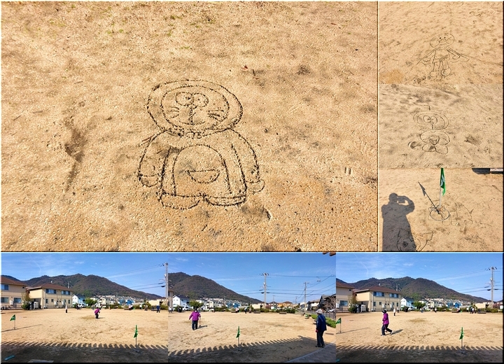 どれも皆、上手に可愛く描かれていますから、微笑ましく見てしまいます。地面をならして消すのも勿体無いですから、そのままホールポストをセットです。
