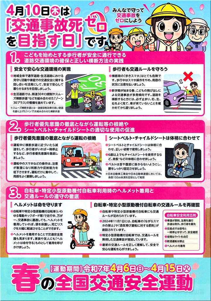 ふ〜ん、本日から春の全国交通安全運動≠ェスタートですか(^.-)☆