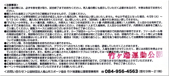 昨年も4月でしたか…福山市民球場でウエスタンリーグ公式戦の開催が予定されておりまして、GONsanもチケット求めていたのですけど、残念ながら天候不良で中止でした。