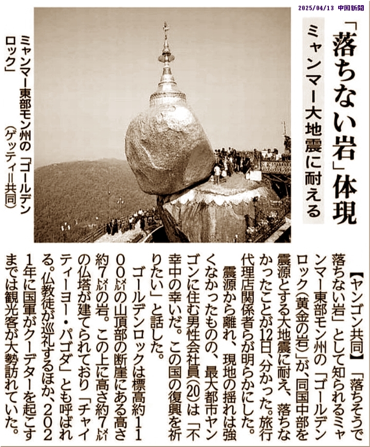 今朝の中国新聞に、ミャンマーのゴールデンロック≠フ記事掲載が…