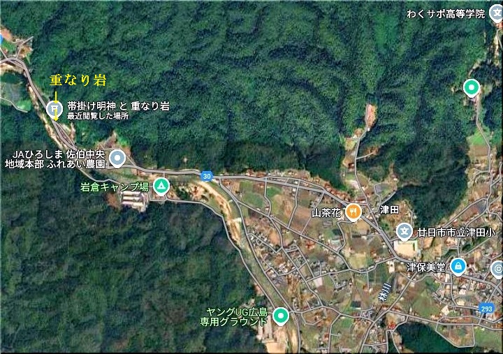 もぅ一ヶ所は、佐伯郡佐伯町(現在は廿日市市)津田の重なり岩≠ネんです。