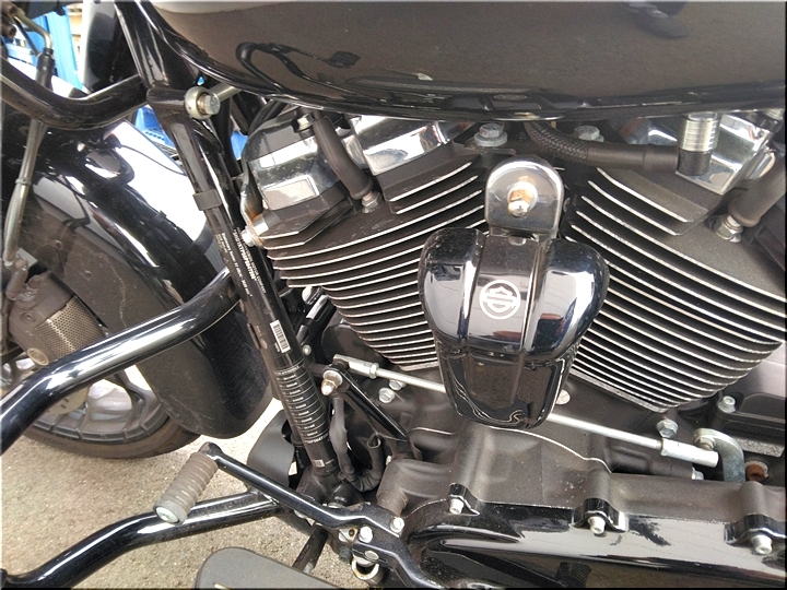 これは、職場の同僚のハーレーなんですけど、駐車場に駐めてありますのをタマに見掛けます(^.-)☆