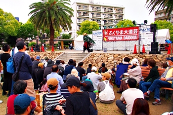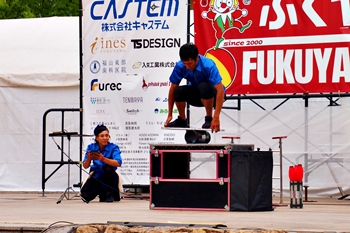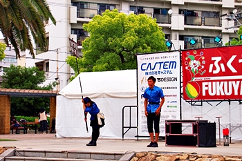 時間を確認しますと、16:20。中央公園ステージでは、そろそろグランプリ決勝≠ェ始まっていますでしょうから、向かってみます。ステージでは、獅子舞のパフォーマンスが終わり、続いて豊来家幸輝《anが登場です。