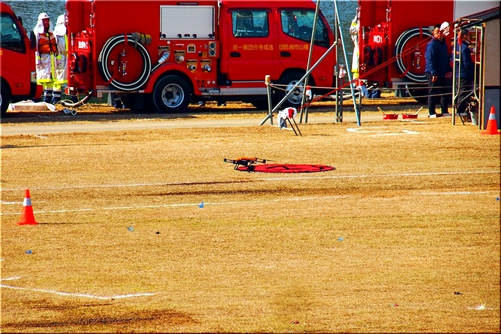 化学消防車の出動で、化学工場の建物火災も無事鎮火。化学消防車・ドローンが撤収となりました(^.-)☆