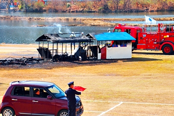 が、訓練ですから、従来ですと、後続車が加減して後方から衝突しますのですけど、今回は、当初からの予定通りなのか否か分かりませんけど、後続車は、実際の事故以上の激しい追突ですから、観客の皆様からは悲鳴に似た驚きの声が…