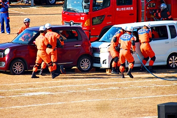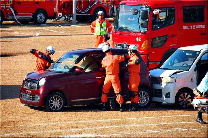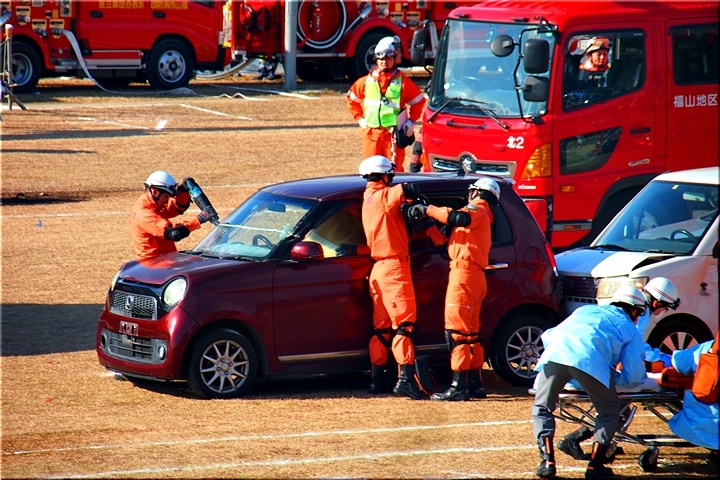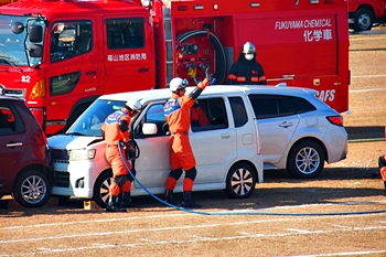 訓練とは言え、レスキュー隊の皆様のドライバー救出に向けたテキパキとした行動。拝見していまして、実に頼もしく感じてしまいましたネ(^-^)//"