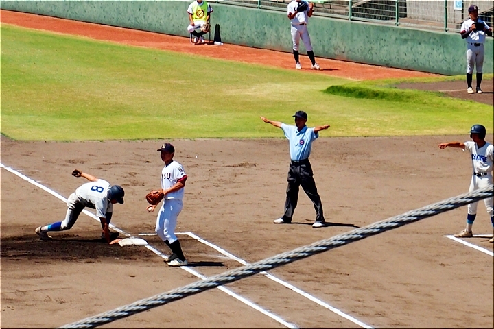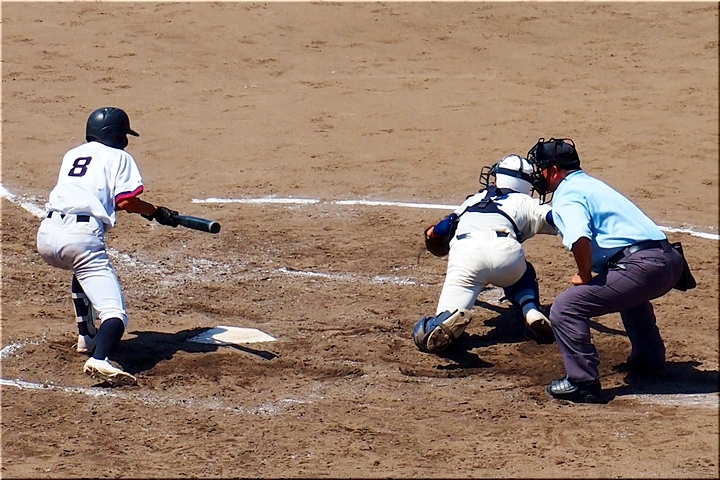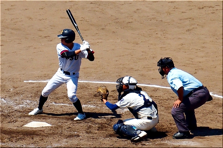 1:9番 藤本 勇太 無死走者なし 1-2からライトフライ 1アウト、2:1番 岩槻 翔大 一死走者なし 2-2からライトへのヒット 一塁、3:2番 山本 陸人 一死一塁 1-0から送りバント成功 2アウト二塁、4:3番 楢崎 成二郎 二死二塁 0-1からショートフライ 3アウト