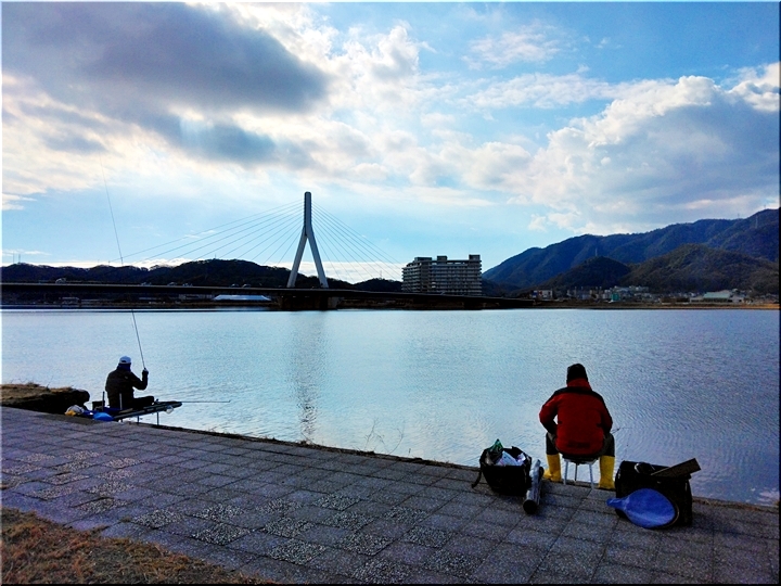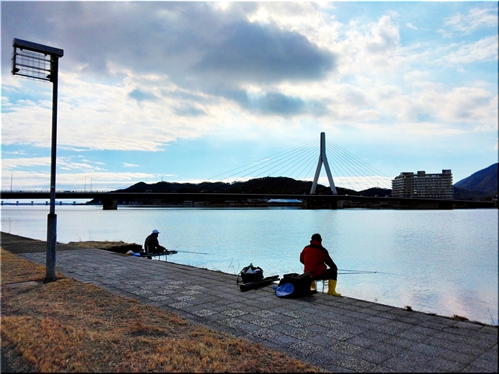 温かい日差しで気持ちもイィですから、護岸には久し振りに釣り客が…この日は、3人の釣り人のお姿が…