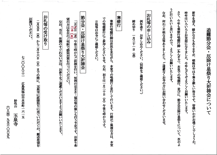 お寺から節分会星祭り≠フご案内が…