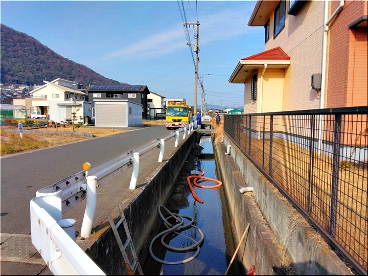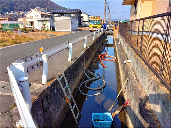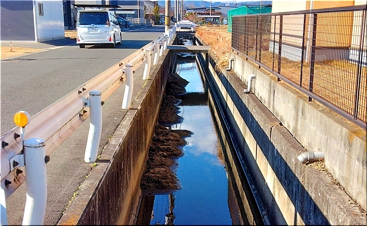 我が家を出まして、まず向かいますのが土砂撤去作業中の用水路(^-^)