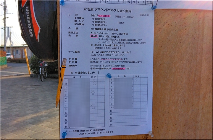 本日の朝、GGに出掛けますと、まずは掲示板を確認です。