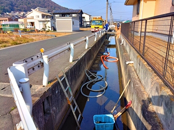 昨日は、午後2:30頃から芦田川河川敷でのウォーキングに出発です。その際にまたまた、先日バキュームで用水路の土砂撤去を行っていました箇所を覗いてみました。