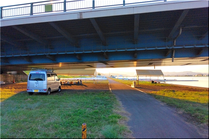 ですが、11:15頃また芦田川大橋を走行しますと、競技は凡て終わりましたようでありました。河川敷から土手に上がられます観客の皆様のお姿が眼に入りましたから…
