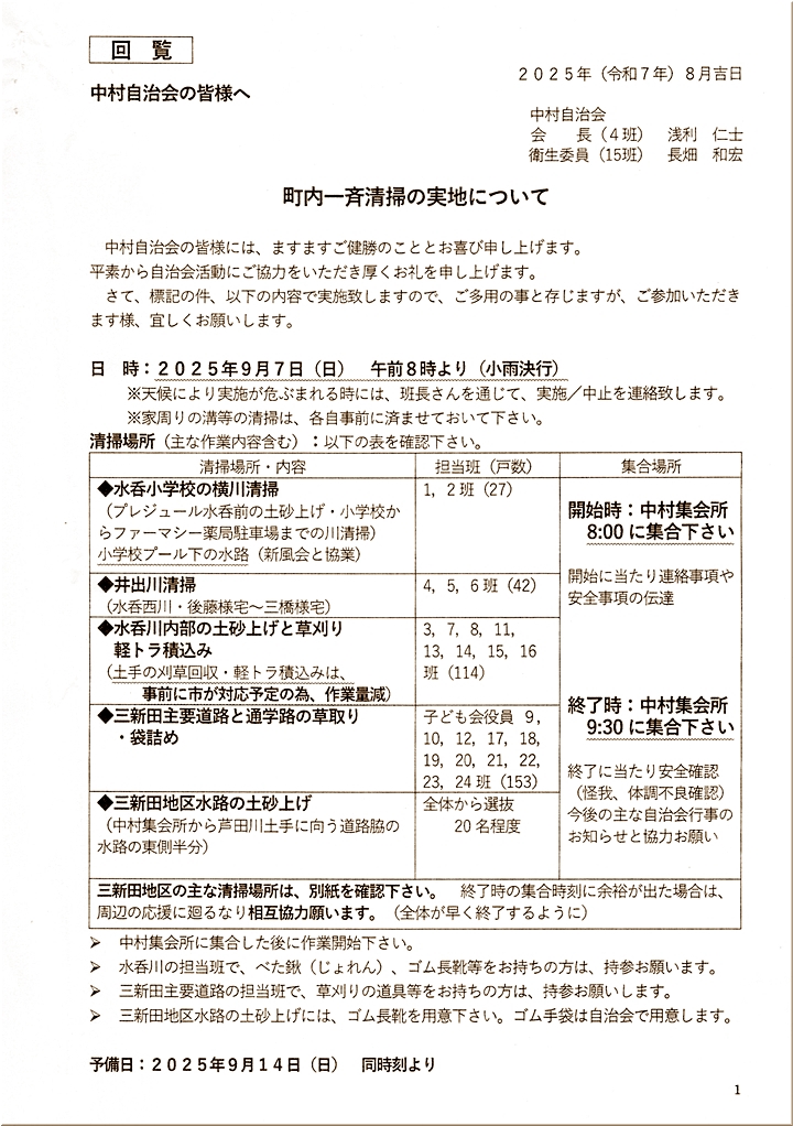 自治会回覧から行事予定を(^.-)☆