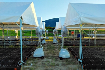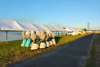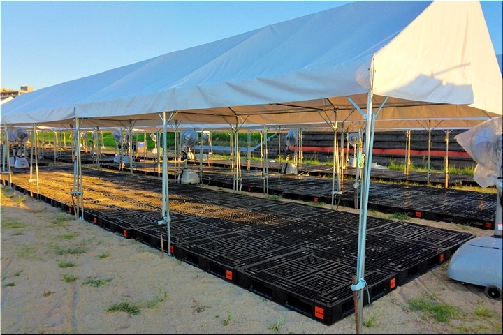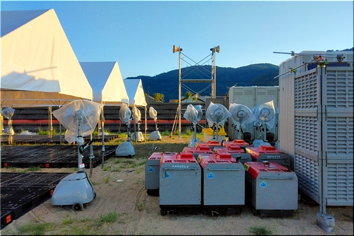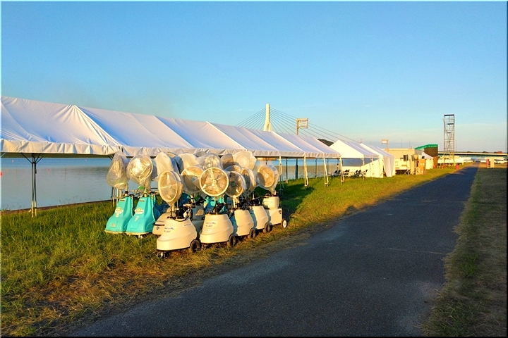 熱中症対策なのでしょうネ、テント下、テント周辺には結構な数の大型扇風機。うん、うん、これでしたら、出場選手・関係者の皆様も快適な環境の中での実施となります事でしょうねぇ〜
