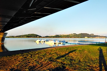水呑大橋下で折り返しての帰路、芦田川大橋が近付いて来ました。