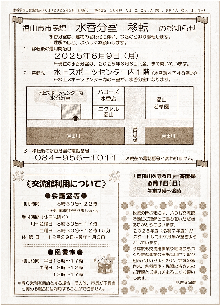 まず最初は、福山市市民課水呑分室≠ェ移転の話題を…