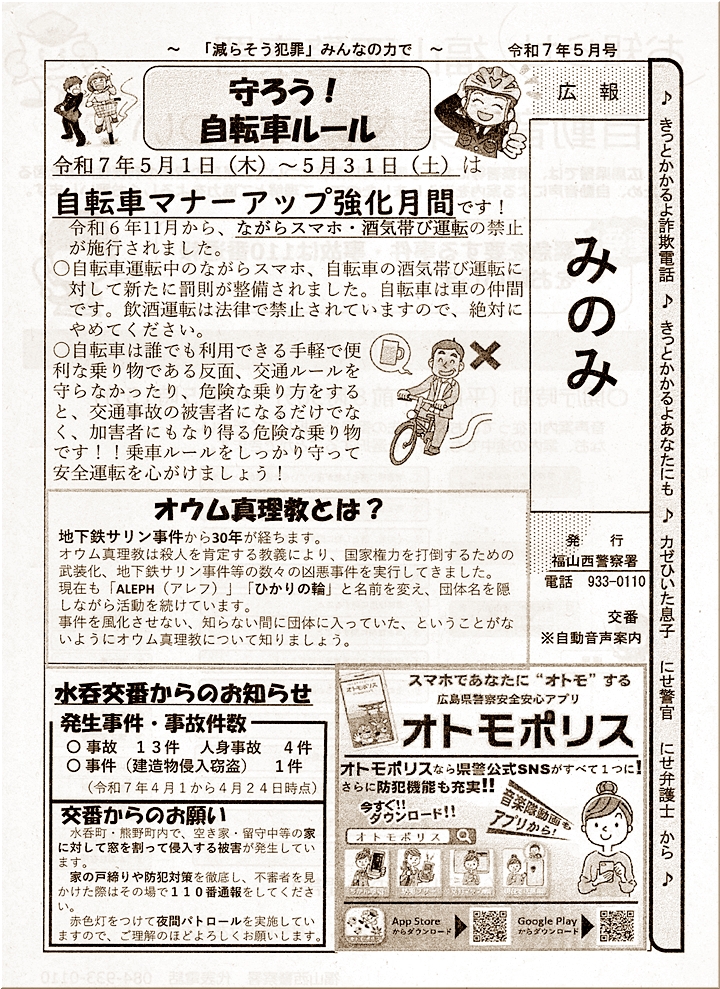 次に、水呑交番の広報みのみ=B4月中の「事件・事故」発生件数は、