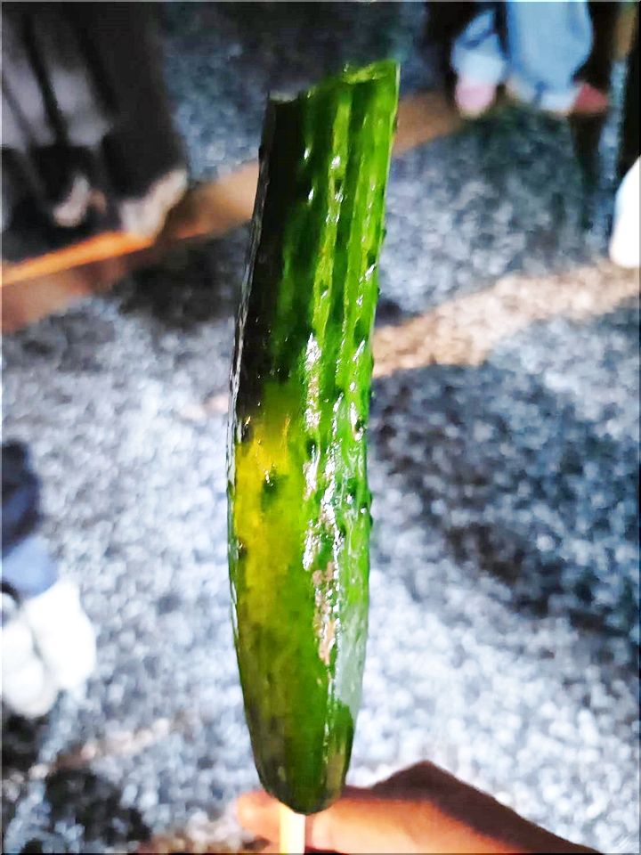 届きました画像から推察しますに、露店が並びます市役所鞆支所辺りからの花火鑑賞となりましたようですねぇ〜ふ〜ん、こんなキュウリを食べながらでしたか(^.-)☆